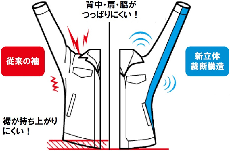 - あらゆる作業姿勢に対応する伸縮性に優れた生地