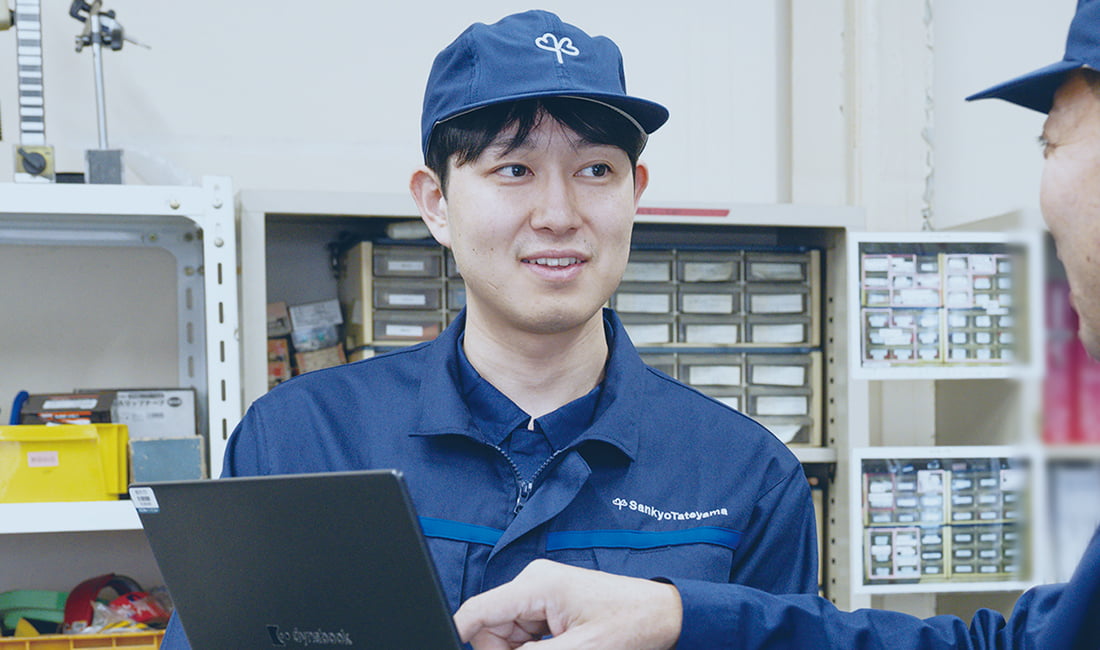 仲間とともに難しい課題に挑戦するおもしろさがやりがいです。