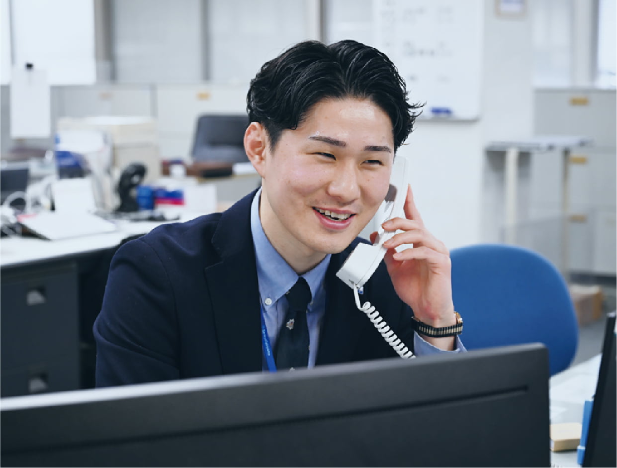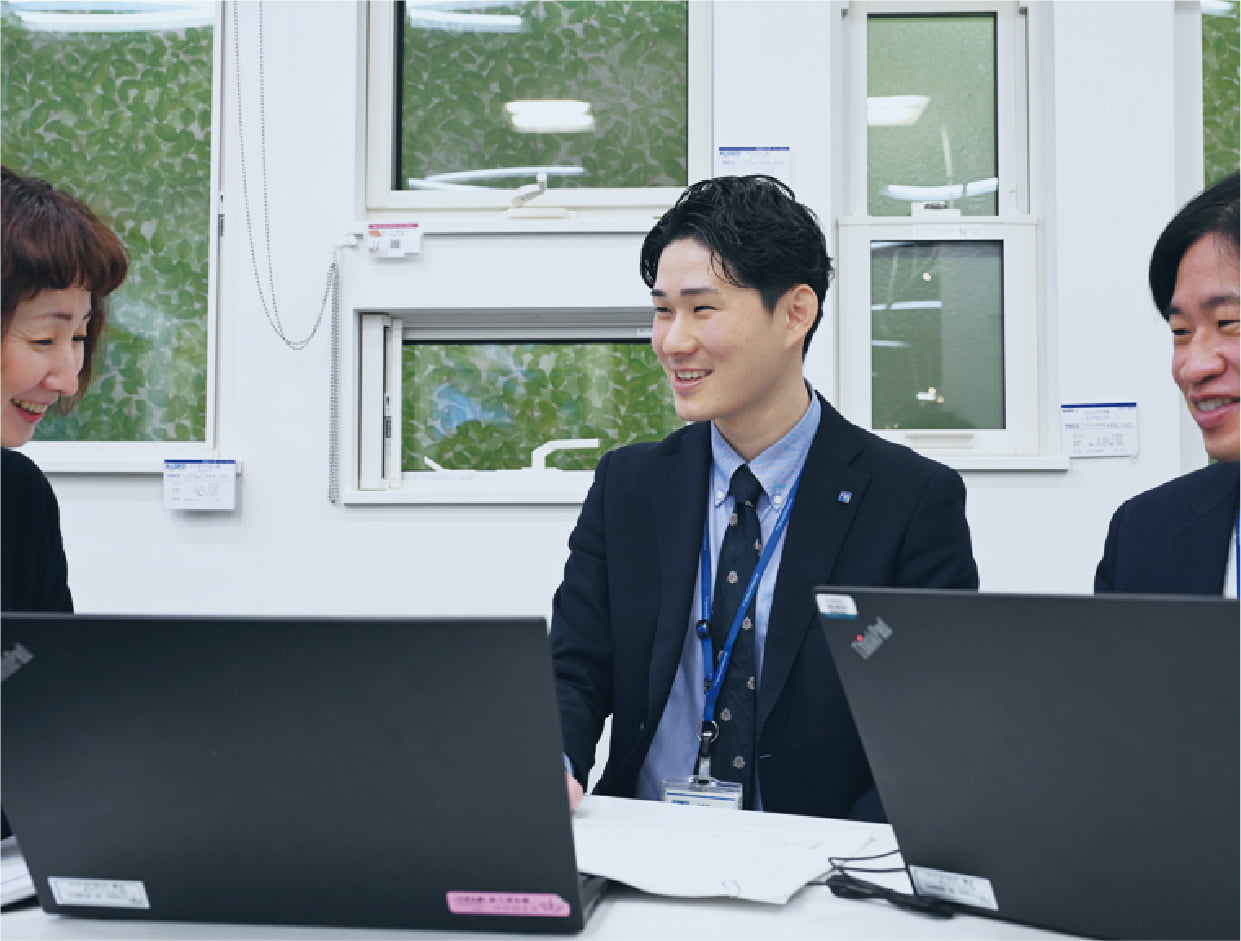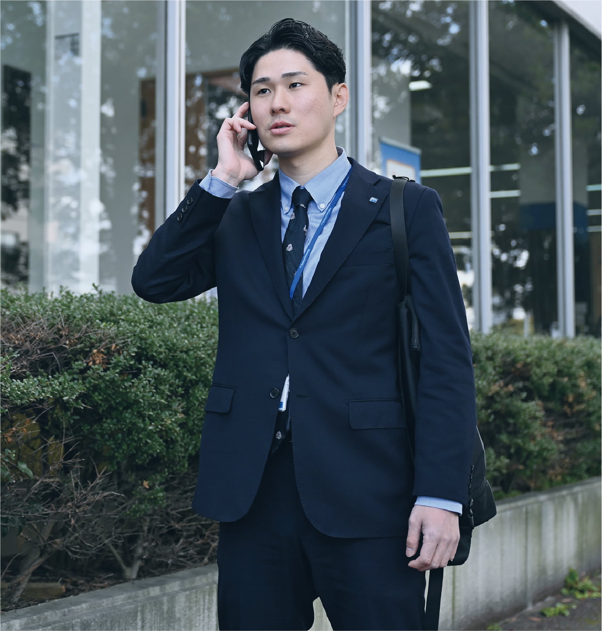 また、部署では最年少ですが、上司や先輩方から多くの挑戦の機会をいただいています。仕事を通して経験値を積むと、営業における選択肢が増えていきます。「次の一手」について相談したいことや判断に迷うことも多々あります。そのような時、先輩は忙しい中でも時間を割いて、私が新人の時と変わることなく親切に対応してくださいます。学生の頃、営業はやりがいがある反面、厳しい世界で独力で目標を達成しなければならないという先入観を抱いていましたが、実際はそうではなく、当社ではチームでコミュニケーションを取りながら進めています。入社以来、様々なアドバイスを受け、お客様の立場に立って考え、行動することを心掛けるようになりました。また、迅速に対応することも意識して行動するようになりました。
