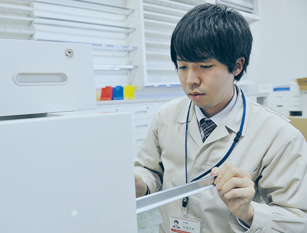 メインは、ドラッグストアの調剤フロアに設置する什器の開発です。先輩の指導を受けながら、高さ2.5メートルの棚をCADで設計し、試作品に取り付けられた大小多数の引き出しが問題なく使用できるかなど、念入りに細部の点検をしています。商品開発を進める一方、東日本大震災後には大学と耐震性の高い什器の研究開発も始めました。このほか、富山県デザイン協会が主催するワークショップにも参加し、美術系の学生とともに、子どものために安全で楽しく使うことのできる玩具の製作をしています。これらの仕事以外に年2回開かれる展示会の準備も担当しています。