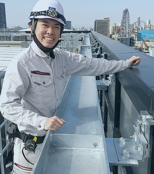 Nさん : 私はMさんと異なり文系出身で、外装関係の仕事に携わりたいという思いから入社を志望しました。当時の私には「営業」と「設計」という職種しかイメージできていなかったので、「設計は無理だろうから営業になるだろうな」と何となく思っていました。でも、実際は施工管理部に配属され最初は驚いたのですが、今となってはとても良かったと思っています。というのも、担当する現場を実際に自分の目で見ることができ、工事が完了した後には多くの人の目に触れ、形として残っていく仕事だからです。同じ現場は一つとしてなく、毎回が新鮮で学びがあります。多くの人々が協力しあい、技術を結集し、より良い方向に進める。そこにやりがいがあります。特殊な案件になると、まだまだ経験不足は否めませんが、先輩方から的確なアドバイスをもらいながら経験を積んでいます。