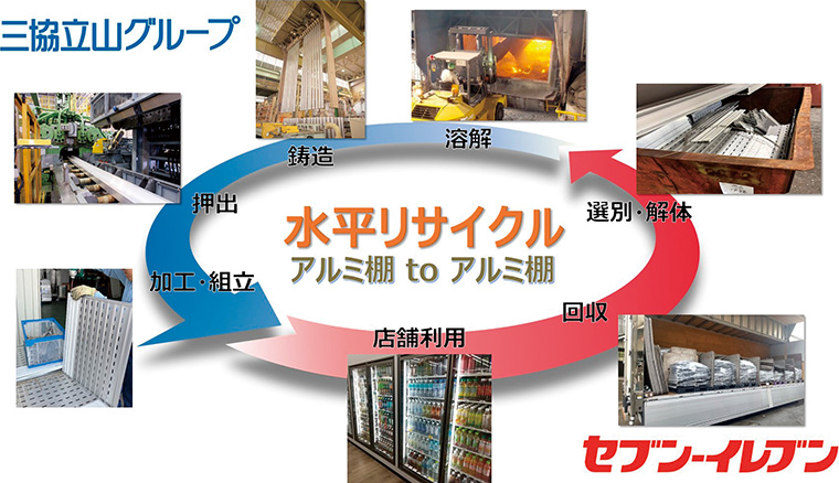 セブン-イレブンの閉店・改装店舗からアルミ棚を回収する水平リサイクルの運用開始