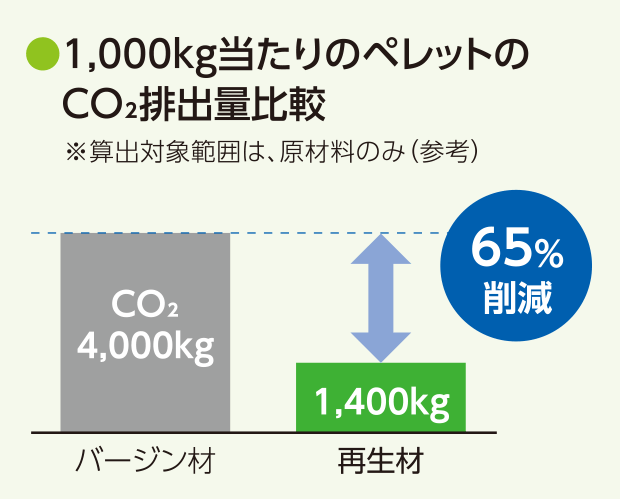 調剤薬局向け引出しスライド仕切板について、リサイクル材への転換を検討しました。バージン材から再生材への切り替えにより、CO₂排出量を1,000kg当たり2,600㎏(65%)削減できる見込みとなっています。また、社内リサイクルシステムの確立や3R+Renewable施策の展開など、循環型社会の実現に向けた取り組みを着実に進めています。