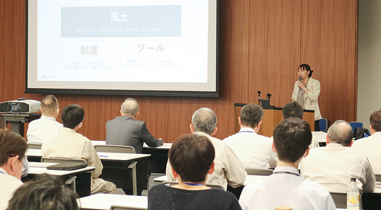 2024年度は、組織風土改革の一環として、主に課長職を対象に、外部講師による『三協立山を良くしていくためのチームワーク向上セミナー』と題し、心理的安全性やチームワークに関する研修会を開催しました。また、「女性社員の活躍」実現に向け、ダイバーシティや人材育成の専門家である篠田社外取締役と女性の管理職や主事(係長級)による座談会を開催しています。「従業員一人ひとりが活躍する施策について」をテーマに管理職として自分自身が実施している人材育成の取り組みや女性社員がより活躍するための課題などについて意見交換を行っています。さらに、全社員を対象にしたeラーニング「男性の育休を通じて考えるダイバーシティ&インクルージョン研修」や女性の管理職候補とその上司への人材育成の強化支援などを実施しています。