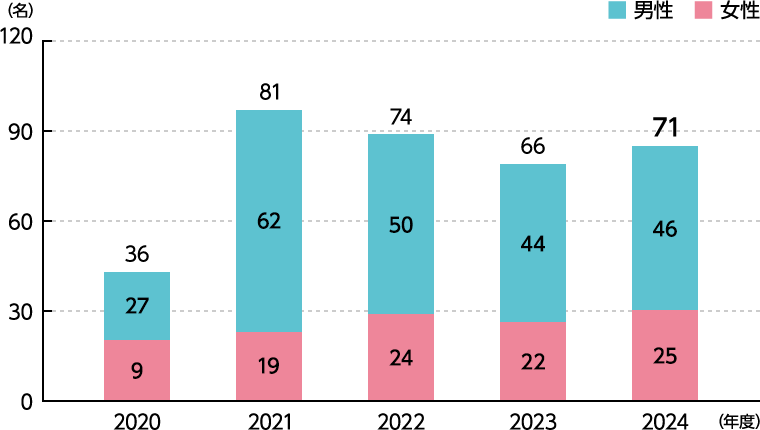 即戦力となる実務経験者を年間を通して採用しています。(2024年度実績は71名)